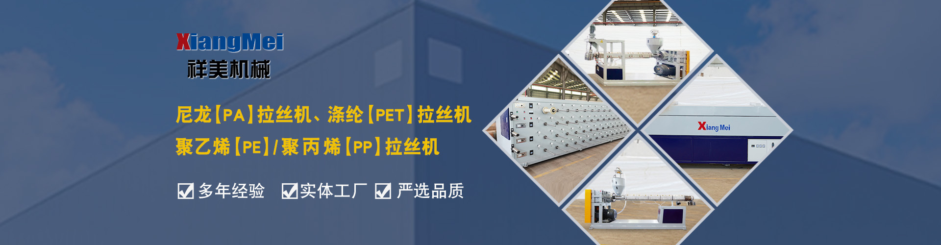 我公司是一家具有30多年專業(yè)生產(chǎn)塑料拉絲機的企業(yè),作為國內(nèi)最早生產(chǎn)圓絲塑料拉絲設備的企業(yè),成為國內(nèi)同行競相爭仿的標桿,公司產(chǎn)品主要可以生產(chǎn)聚乙烯(PE)、尼龍(PA)、聚丙烯(PP)、滌綸(PET)等作原料拉絲機設備及其配套設備、鉛芯機設備及其配套設備,拉絲機設備主要生產(chǎn)的產(chǎn)品有單絲、復絲、扁絲、刷絲、草坪絲、拉鏈絲、割草線等各類線絲,公司產(chǎn)品在國內(nèi)同行業(yè)中性價比高、有良好的口碑,曾獲“國家高新技術(shù)、新產(chǎn)品博覽會金獎”被輕工部定位替代進口產(chǎn)品、國家級新產(chǎn)品,并多次獲得省、市科技進步獎,產(chǎn)品遍布全國大部分地區(qū),并遠銷日本、意大利、俄羅斯、韓國、印度、澳大利亞、印度尼西亞、墨西哥、菲律賓、泰國、朝鮮、巴基斯坦、烏茲別克斯坦、越南、馬來西亞、老撾、越南、坦桑尼亞等國家和地區(qū)。 公司實行現(xiàn)代化企業(yè)管理,始終秉承以科技為先導,制造為基礎(chǔ),管理為核心的企業(yè)面貌,運用先進的生產(chǎn)設備,創(chuàng)新的思維理念,確保產(chǎn)品多樣化、系列化,高品質(zhì),把誠信、責任、創(chuàng)新作為祥美人不斷的追求的目標,為新老客戶打造高品質(zhì)的拉絲設備。 公司位于黃海之濱、亞歐大陸橋東橋頭堡的海濱城市——連云港,這有海陸空便捷的交通網(wǎng)絡、風景秀麗的山海風光,總經(jīng)理江中堯先生攜公司全體員工竭誠歡迎各界人士、中外新老客戶來連洽談業(yè)務。